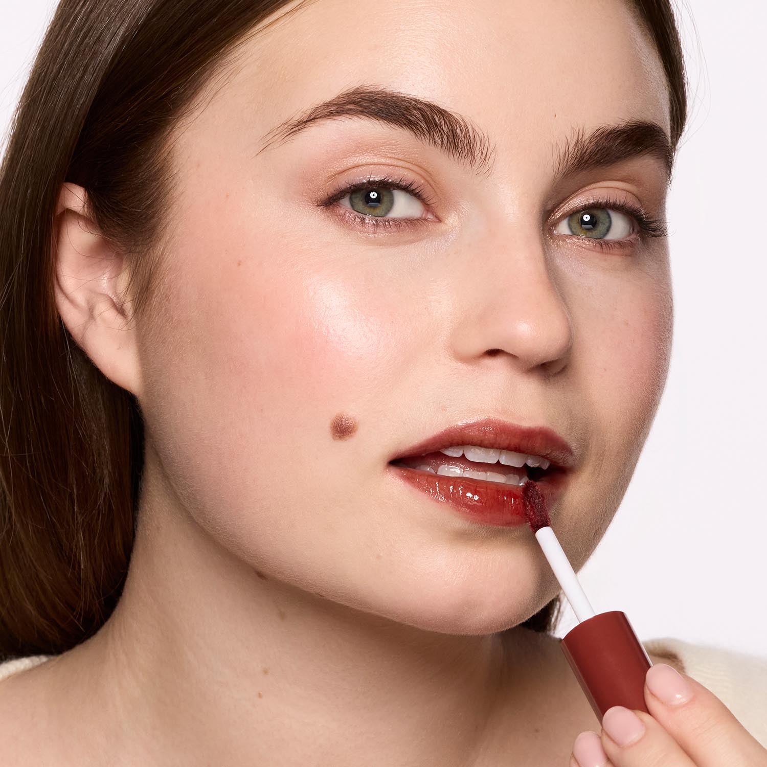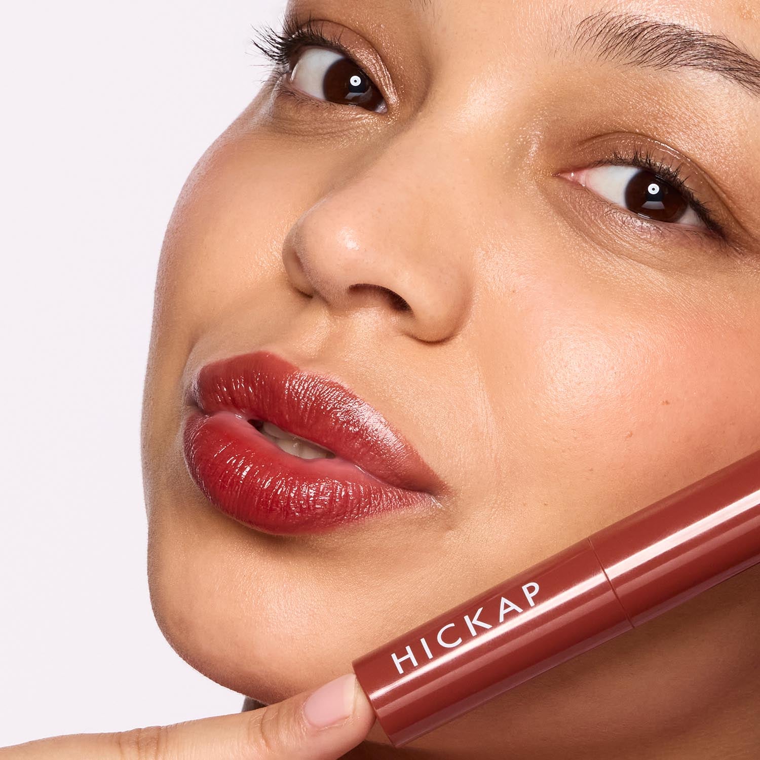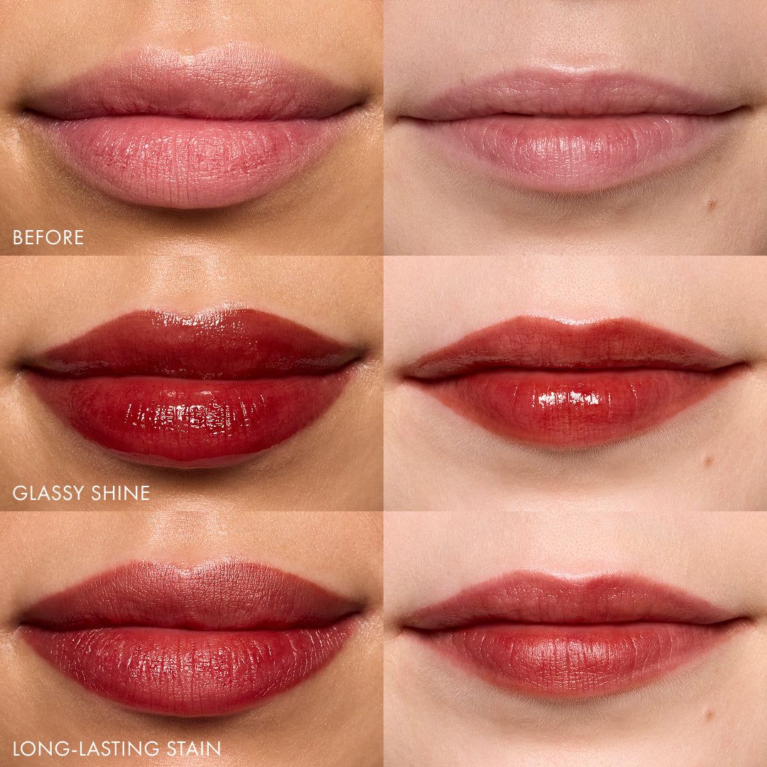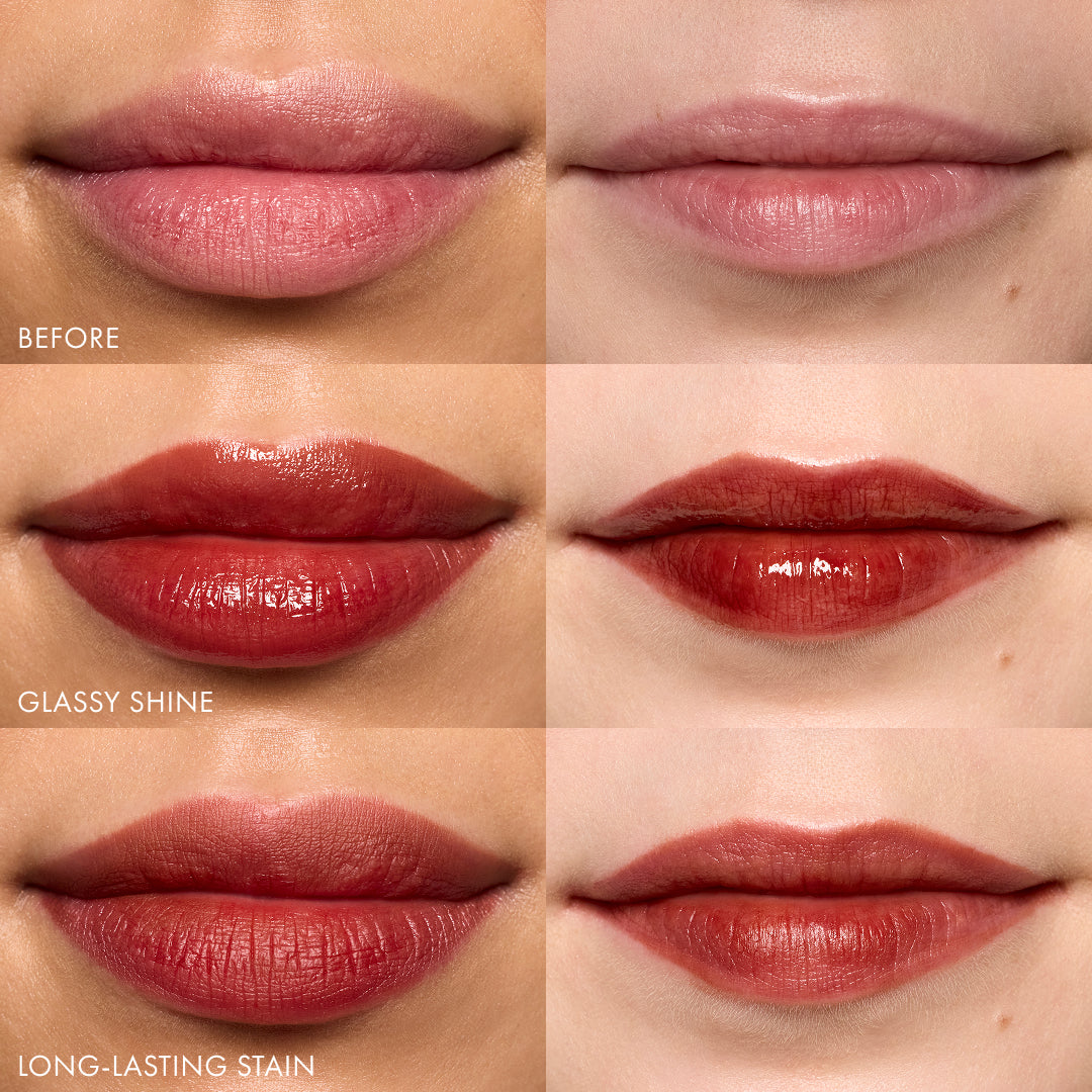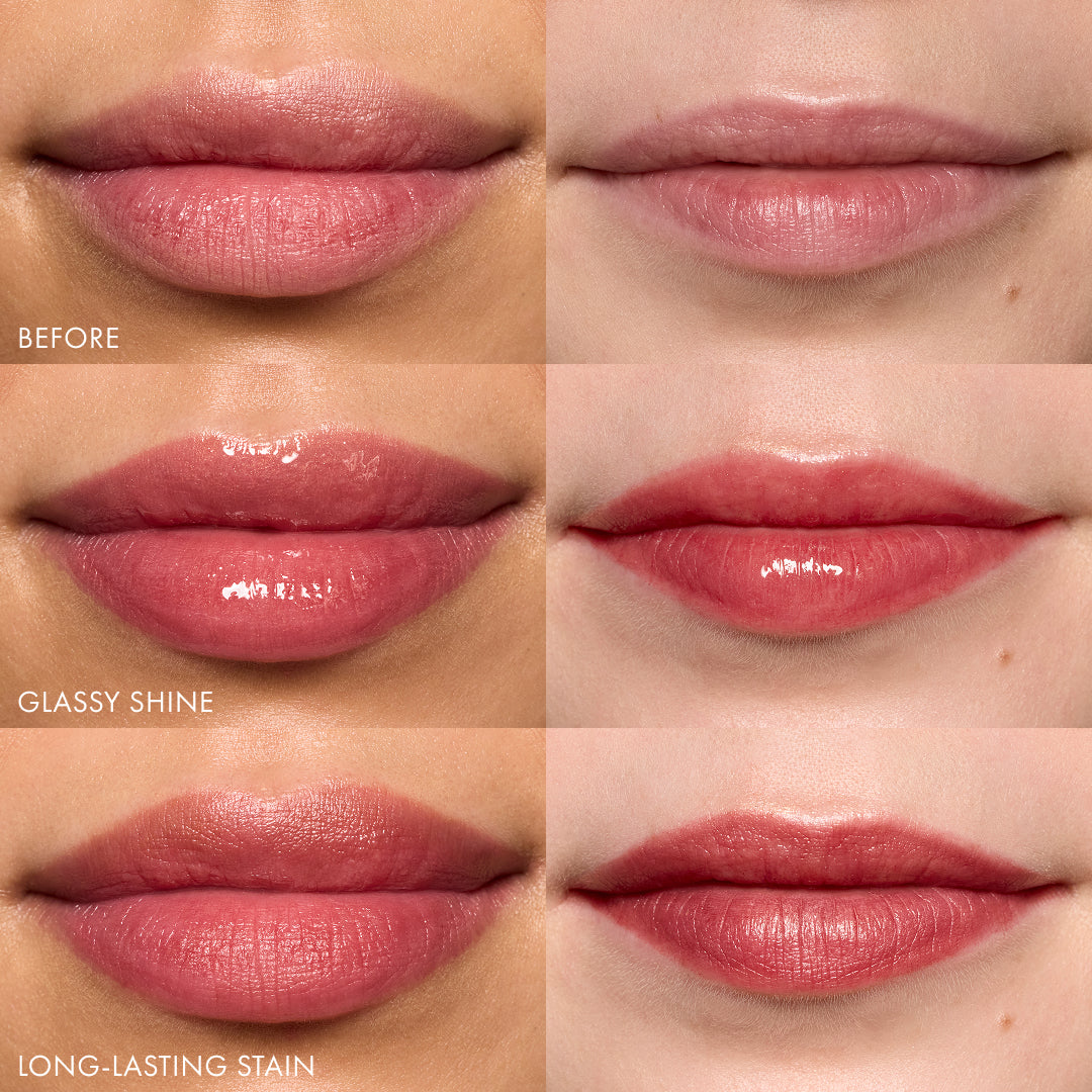 Påføres direkte på læberne for en let farve og høj glans. Byg farven op i flere lag for et mere intens udtryk. Glansen aftager gradvist og efterlader en langvarig farveeffekt.